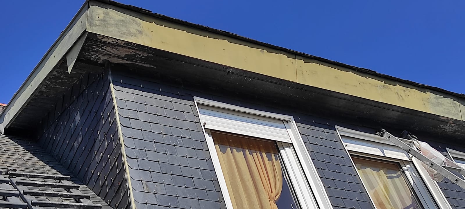 Pose de PVC sur planche de rive et sous face cache-moineaux – avant